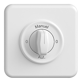 STANDARDdue (SNAPFIX) • Abdeckset • Für Drehschalter mit Drehgriff • Beschriftung 0 - Manuel - 0 - Automatique • Ohne Abdeckplatte • Frontscheibe 53 mm, für Bohrung 50 mm • weiss