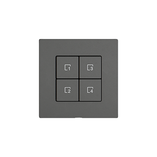 EDIZIO.liv • Commande poussoir scène Wiser 4 scènes • Fonctionnel avec unité fonctionnelle Wiser • Se compose de set de recouvrement et module de commande • Le touche de scène vous permet d'enregistrer et de rappeler des scènes • Éclairé par LED intégrée • 4 touches • Sans cadre de recouvrement • Système de fixation SNAPFIX® • G.A (926-) • gris foncé • IP20 • 60 x 60 mm