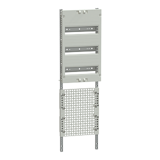 Pragma multi • Kit di montaggio combinazione DIN + multimedia • Campo completo con rotaia, guida DIN, copertura DIN, separatore di file e lamiera perforata • Per 12 moduli per ogni fila DIN • Distanza tra le file 125 mm • 1 campo • 6 file • 3 file DIN, 3 file multimedia • Kit di montaggio